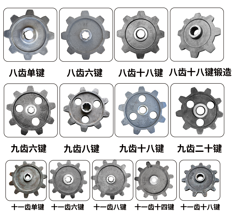 驅動輪有鑄鋼鍛造35MnB,40Mn2等多種工藝,型號多種多樣,適用于90 72節距的履帶,直徑選擇多樣,尺寸精細,花鍵齊全,適用各種噸位的履帶底盤。