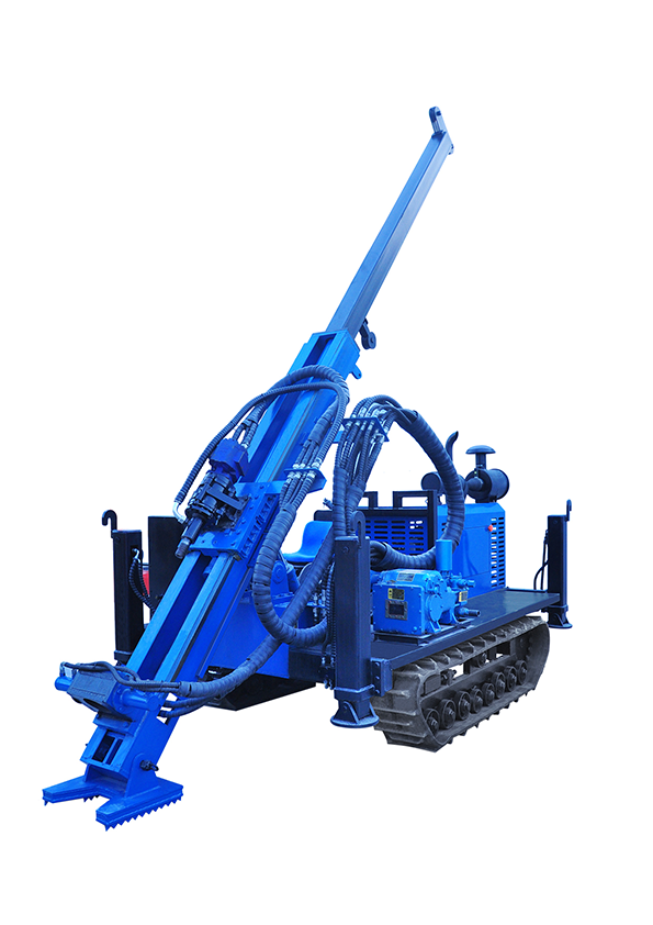 無線遙控行走,液壓桅桿自動升起,動力頭自動移機提鉆為該鉆機一大特色,其中桅桿自動升起,動力頭移機極大緩解了現場施工的難度,有效減小了鉆機施工人數,節約成本,該鉆機采用78KW發動機,動力強勁,扭矩大,適用于各類復雜地層的金屬礦開采